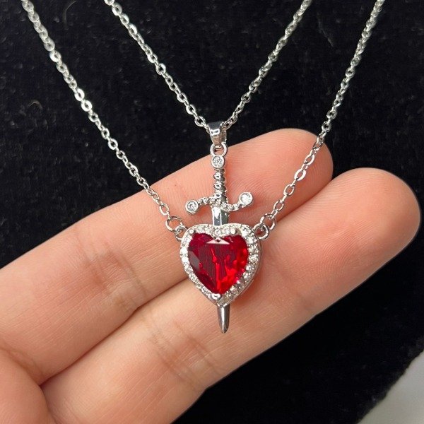 Precio por los dos collares, cadenas de ACERO INOXIDABLE, dije de cobre bañado en micro zirconias. Se recomienda no mojar, no exponer a cremas, liquidos de limpieza o ambientes humedos